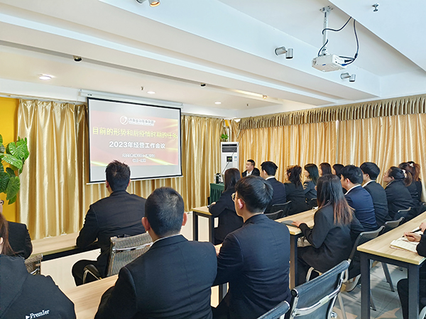首先,杜总带领大家观看了各机构对集团十五周年生日的祝福视频,了解了集团一路走来的创业之路、发展之路;传达了集团2023年经营工作会议上的主要内容以及会议精神。会上杜总根据2022年度各营业机构的营业收入、人均创佣金额以及合作客户类型等关键数据总结了荆州万乘的经营状况,客观分析、阐述目前荆州万乘的现状与不足,并表示希望大家以今天的总结、规划为鞭策,发扬优势,改进不足,不断进取,在各自岗位上贡献应有的力量。随后提出了荆州万乘2023年的工作重点: