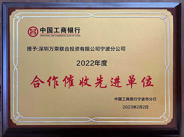 虎去威犹在,兔来运更昌。冬日暖阳,宁波万乘传来佳音。2023年2月6日,中国工商银行宁波市分行在宁波万乘召开2022年度信用卡合作催收总结会议,并为宁波万乘荣获中国工商银行宁波市分行2022年度“合作催收先进单位”颁发荣誉奖牌。宁波万乘副总经理邱岩携业务经理朱涛热情接待了来访领导。