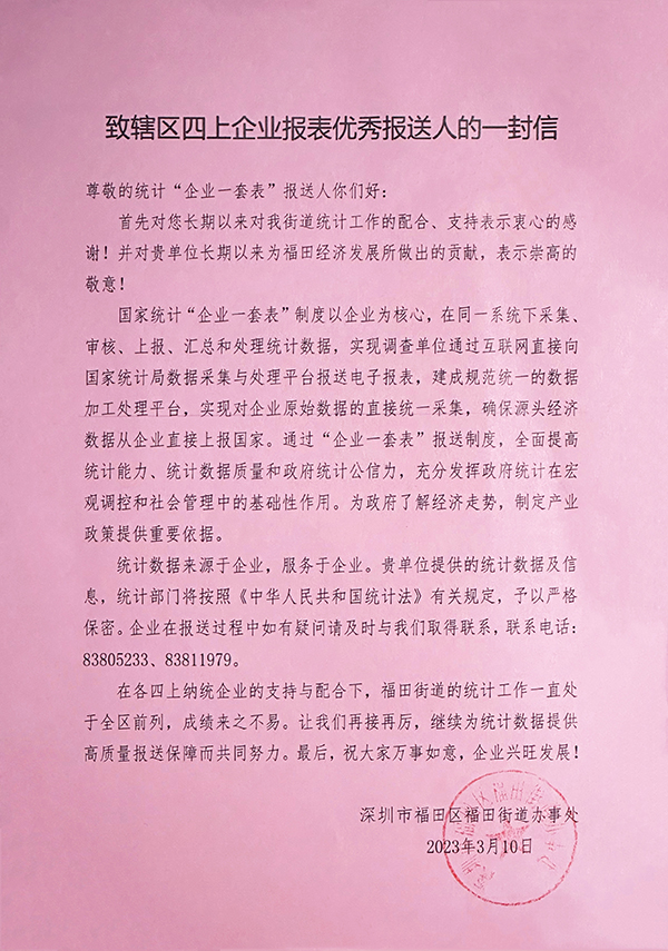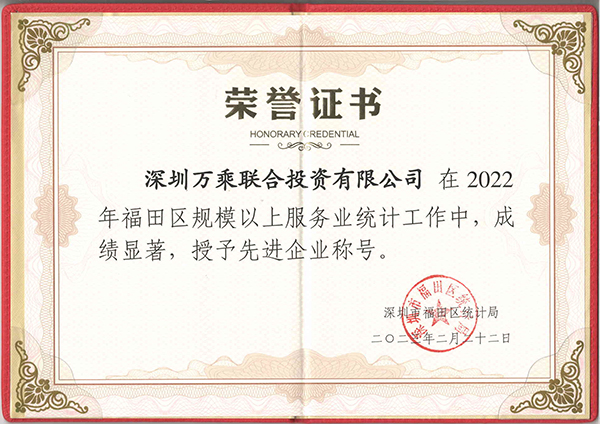 获此殊荣,充分体现了深圳市福田区统计局对万乘集团统计能力、统计数据质量的高度认可,同时也是对万乘集团财务管理部辛勤付出的褒奖。