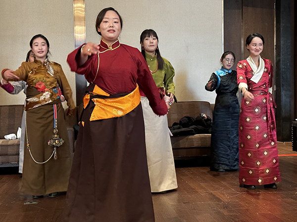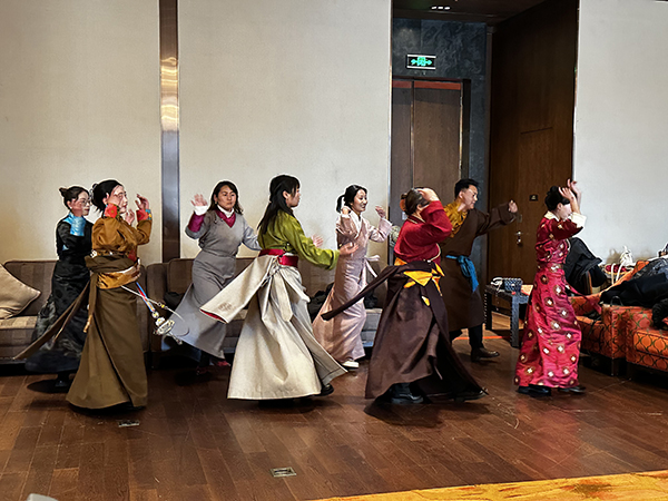 西藏分公司多才多艺的藏族员工表演了藏族歌舞、吉他弹奏等精彩节目,赢得了一阵阵掌声与喝釆声。