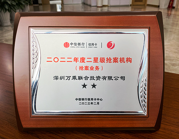 三月春光美,繁花次第开。在这个万物复苏、春意盎然的季节里,万乘集团荣获中信银行信用卡中心“2022年度二星级抢案机构”(抢案业务)。