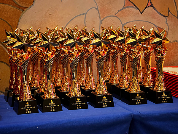 会议的第二项是颁发2022年度万乘之星奖项。随着歌声的结束,2022年度万乘之星颁奖典礼正式拉开帷幕。由万乘集团CEO韩晓、CFO雷波担任颁奖嘉宾,分别向获得万乘之星金奖、银奖、铜奖和希望之星的88名万乘菁英颁发奖杯和荣誉证书,并合影留念。