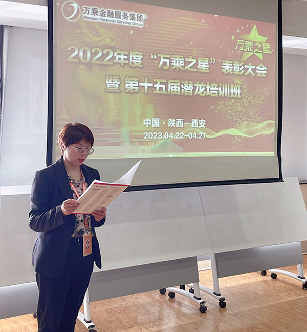 2023年4月27日,2022年度”万乘之星”表彰大会暨第十五届潜龙培训班圆满落幕,甘肃万乘之星关喜玲载誉而归。