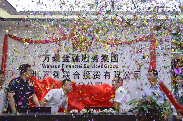 2023年6月2日上午吉时,在飘飞的礼花中,在员工的欢呼声和掌声中,万乘金融服务集团创始人/CEO/总裁韩晓、广发银行武汉分行营业部张总、宋总、中邮消费金融公司武汉营销中心刘经理、武汉万乘副总经理何亮共同揭下覆盖在形象墙上的红绸布,标志着武汉公司进入了一个新的发展阶段。