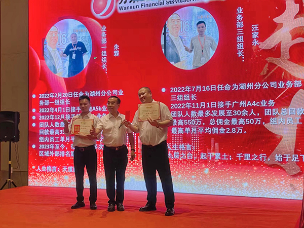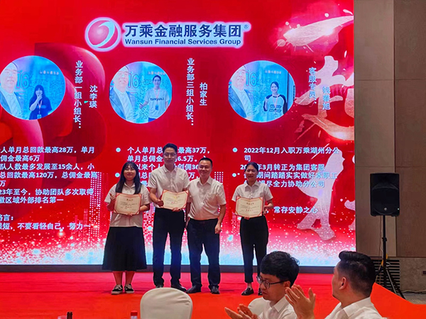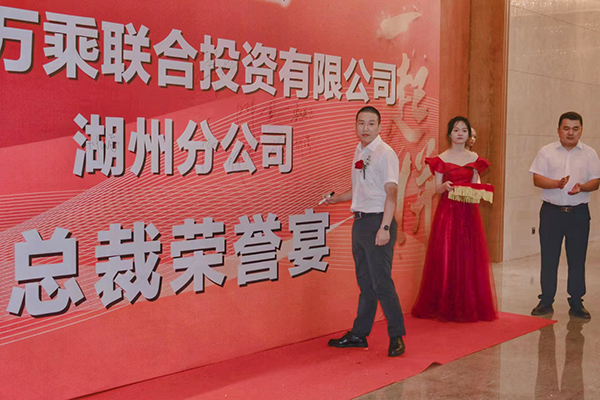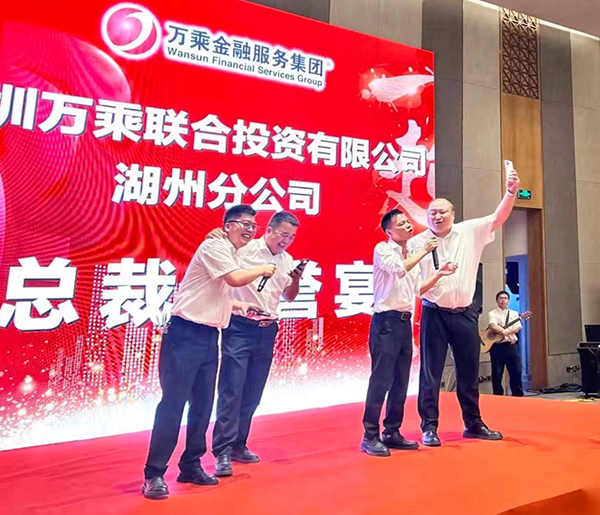 2023年7月20日晚,从南京专程赶赴湖州的万乘金融服务集团创始人/CEO/总裁韩晓先生在五星酒店——湖州皇冠假日大酒店筵开7席,为湖州分公司6月份佣金收入突破110万元庆功。