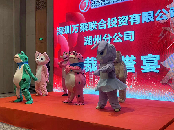 一曲劲舞之后,韩晓总裁、周卫平副总裁、韩超副总裁、殷攀总经理助理联袂登台,向全体员工和各位嘉宾敬酒。宾主共同举杯,祝湖州分公司业绩长虹,财源广进。