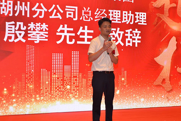 湖州分公司总经理助理殷攀代表全体员工郑重表态:感谢韩总裁在集团半年经营工作会议刚刚结束就马不停蹄地赶到湖州为湖州团队庆功,这充分显示了总裁室对湖州万乘的重视和信任,湖州分公司全体将士决不辜负总裁室的殷切期望,在下半年全力冲刺新的业绩目标,使命必达,不负韶华,不负万乘!