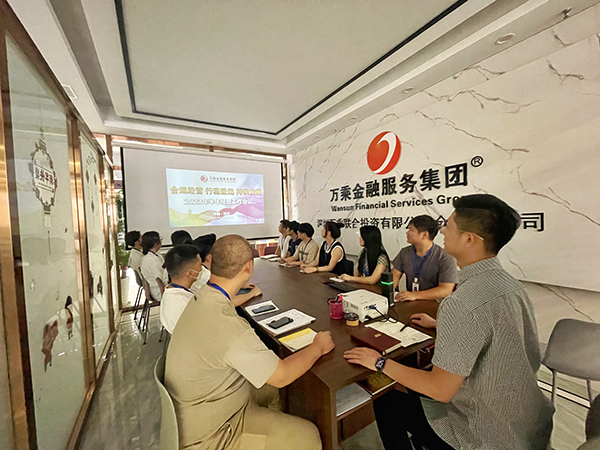 2023年7月24日下午13:30,金华万乘召开全体管理层会议,贯彻学习集团以“合规经营 行稳致远 持续发展”为主旨的2023年半年经营工作会议精神,会议由金华万乘副总经理胡忠志主持。