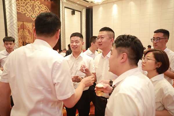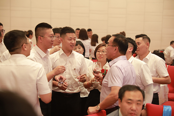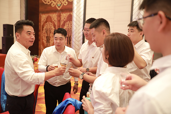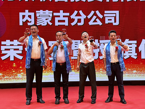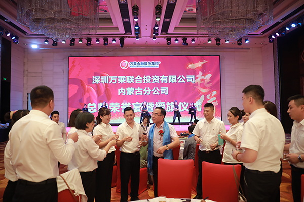 颁奖仪式结束后,韩晓总裁、刘润东董秘、崔明绪副总裁、高建总助联袂登台,向全体员工和各位嘉宾敬酒。宾主共同举杯,祝内蒙古万乘业绩长虹,财源滚滚;祝内蒙古万乘青春飞扬,不负韶华!
