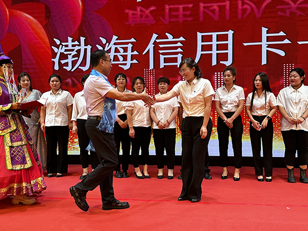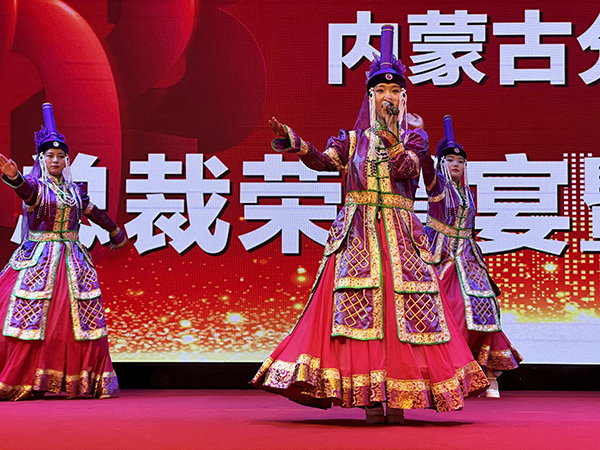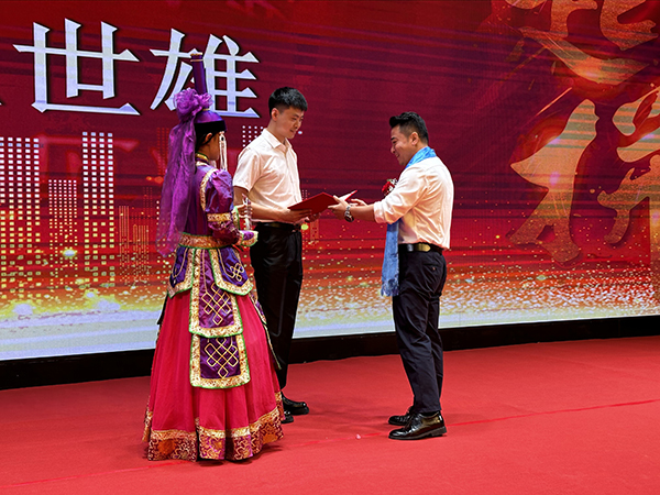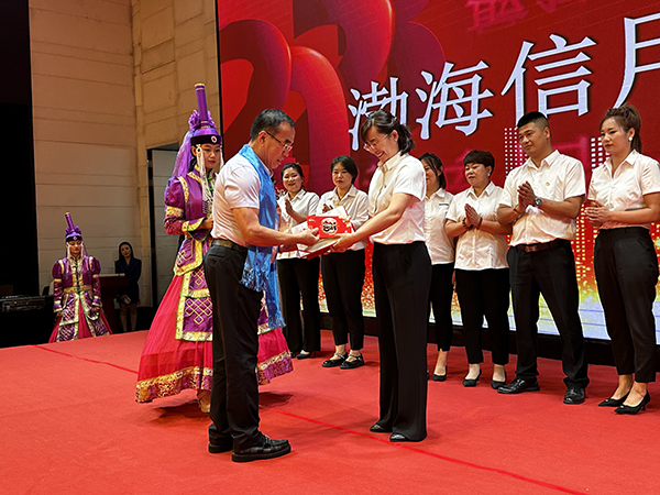 一曲奔放的蒙族舞蹈后,颁奖环节开始。韩晓总裁、刘润东董秘、崔明绪副总裁分别上台,为获得“优秀团队奖”、“最佳创佣奖”、“最佳新人奖”的团队颁发奖杯、荣誉证书和奖金。