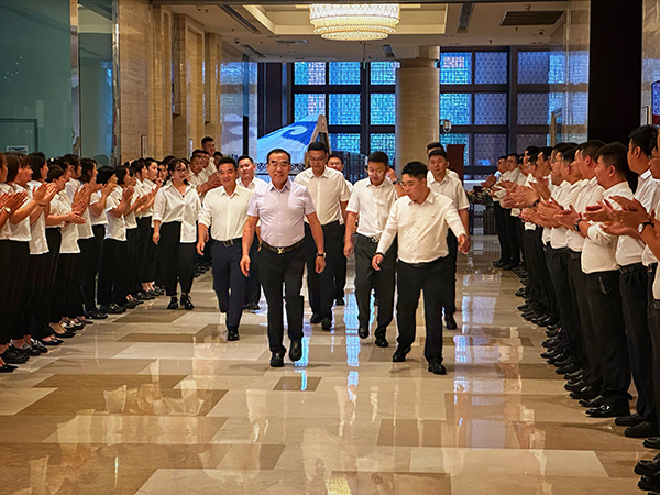 随后,高建与内蒙古分公司核心管理团队向韩总裁宣誓:我肩负着集团总裁室的期望与信任,我将以满腔热忱,全部智慧,永不言败的精神,带领团队完成总裁交付的任务,使命必达,无悔青春,不负万乘!
