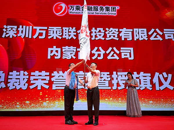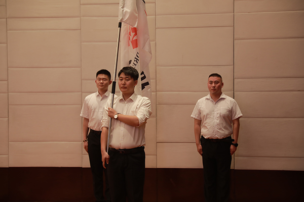 在激昂的音乐声中,万乘集团“青春梦之队”授旗仪式拉开大幕。两名护旗手迈着整齐的步伐,护送“青春梦之队”旗帜进入会场,韩总裁从旗手手中接过旗帜,将万乘集团第4面“青春梦之队”旗帜郑重授予内蒙古分公司总经理助理高建。高建接过旗帜,用力挥舞,全场响起雷鸣般的掌声。飘扬的旗帜,既象征着至高无尚的荣誉,也象征着集团总裁室对内蒙古万乘的肯定,更代表着内蒙古万乘战狼团队钢铁般的意志和决心!
