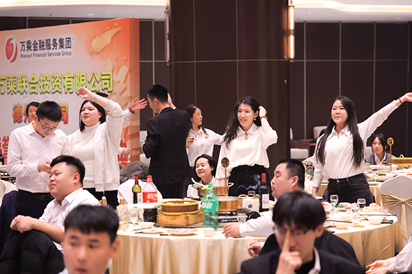 在嘉宾签名和拍摄“全家福”后,一曲优美的“丽人行”舞蹈拉开了晚宴的大幕。在潮水般的掌声中,韩晓总裁发表了热情洋溢的讲话。韩总裁说,今天是一个值得纪念的日子,第一,德州分公司连续3个月佣金收入突破100万元,喜迎万乘集团的最高荣誉-总裁荣誉宴;第二,今天也是德州分公司成立一周年的日子,是德州分公司的成人礼,值得好好庆祝。时光荏苒,一年前的今天,德州万乘盛大开业,走上了白手起家,开疆拓土的征途。虽然在公司成立初期走了不少弯路,经历了不少风雨和坎坷,但在今年5月9日总裁室调整德州分公司领导班子后,德州分公司在新任负责人张远远总经理助理的带领下,重整旗鼓,砥砺前行,重新踏上征程,仅用短短4个月的时间,就彻底改变了分公司的面貌。9月份佣金收入达到120万元,10月份佣金收入达到160万元,11月份佣金收入达到176万元,一路高歌,一路芬芳,一路辉煌,让万乘在德州开枝散叶,让万乘的大旗在德州大地高高飘扬!为什么今天我要在这家酒店的凤凰宴会厅为你们举办庆功宴?因为德州分公司就像涅槃的凤凰,已浴火重生,翱翔九天!