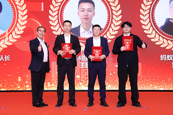 领导致辞后,一曲励志歌曲《红日》将议程带到了表彰环节。万乘集团副总裁韩超为3名获得“优秀新人奖”的小伙伴颁发获奖证书和奖金;万乘集团董事会秘书刘润东为6名获得“优秀员工奖”的小伙伴颁发获奖证书和奖金;韩晓总裁为3名获得“优秀团队长奖”的小伙伴颁发获奖证书和奖金。