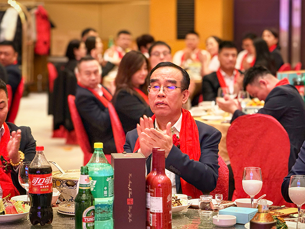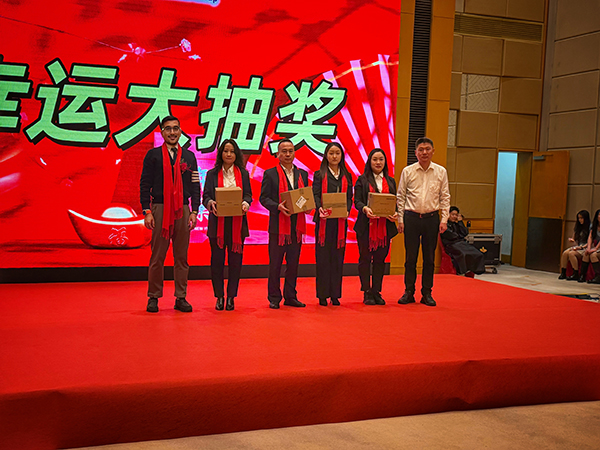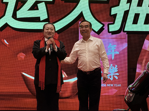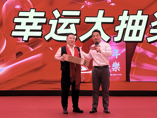 美酒佳肴,杯觥交错,欢声笑语,歌舞升平,宾主共享万乘大家庭的浓浓亲情。而不断抽出的各项大奖,更是将团拜会的气氛不断推向高潮!