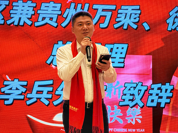 万乘集团董事会秘书刘润东、万乘集团副总裁韩超、江西分公司兼贵州分公司总经理李兵也分别登台发表新年贺辞。