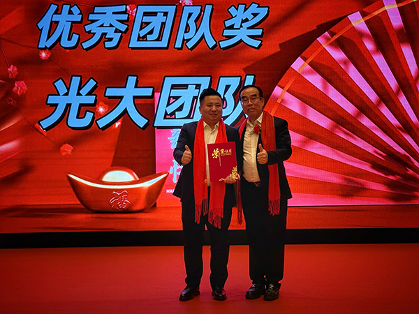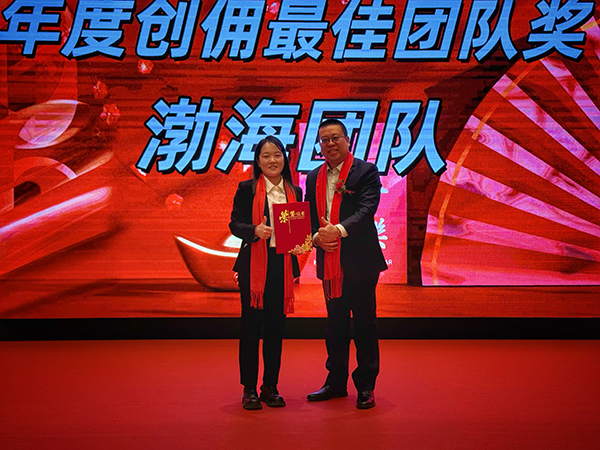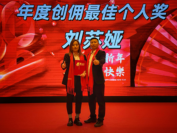 领导致辞后,一曲悠扬的歌曲“鸿雁”将流程引入了表彰环节。韩晓总裁、刘润东董秘、韩超副总裁、高建总经理、其乐格日总经理助理分别向荣获“优秀团队奖”、“优秀团队长奖”、“年度最佳创佣团队奖”、“年度最佳创佣个人奖”、“优秀新人奖”的个人和团队颁发获奖证书和奖金。