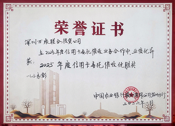 这份荣誉,是中国农业银行温州分行对温州万乘过去一年工作成果的高度肯定,更承载着对双方未来深化合作的殷切期许,激励着温州万乘在新的一年里砥砺奋进、再攀高峰。