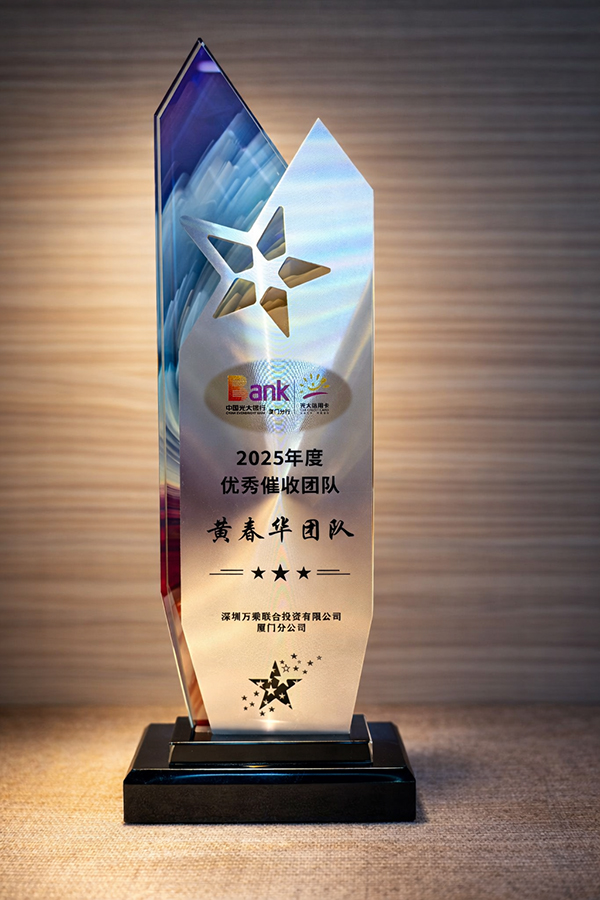2026年2月4日,在中国光大银行厦门分行信用卡业务部召开的“2026年信用卡催收启动大会”中,厦门万乘荣获“2025年度冠军机构”奖,厦门分公司总经理陈满霞荣获“2025年度卓越管理者”奖,光大项目黄春华团队荣获“2025年度优秀催收团队”奖。