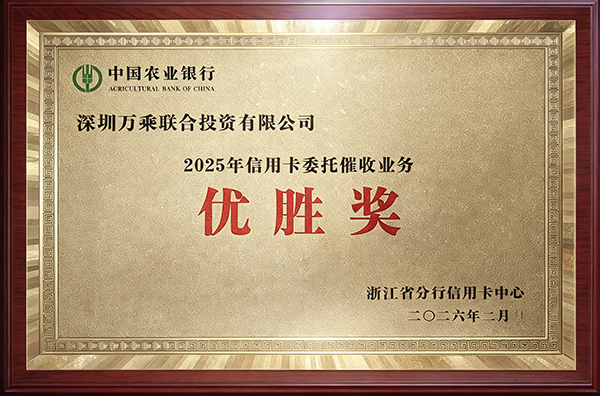 会议中,中国农业银行浙江省分行对2025年度全省信用卡合作催收工作进行总结通报,对业绩优异的委外合作机构进行表彰;并对今后工作中加强合规催收,推动业务深入有序开展提出指导和要求。凭借2025年的不懈努力,万乘浙江大区荣获2025年度信用卡委托催收业务“优胜奖”荣誉奖牌。