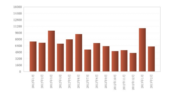 2月末,本外币贷款余额69.28万亿元,同比增长16.1%。人民币贷款余额64.70万亿元,同比增长15.0%,分别比上月末和上年同期低0.4个和0.2个百分点。当月人民币贷款增加6200亿元,同比少增907亿元。分部门看,住户贷款增加1213亿元,其中,短期贷款减少170亿元,中长期贷款增加1383亿元;非金融企业及其他部门贷款增加4994亿元,其中,短期贷款增加1814亿元,中长期贷款增加2826亿元,票据融资增加181亿元。2月末外币贷款余额7303亿美元,同比增长34.1%,当月外币贷款增加183亿美元。1-2月人民币贷款增加1.69万亿元,同比多增2433亿元。