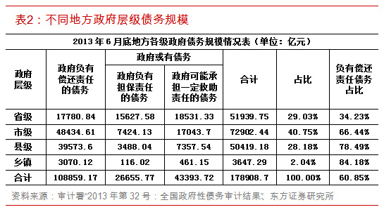 二、债务层级分布:不发达地区在省级,发达地区在区县