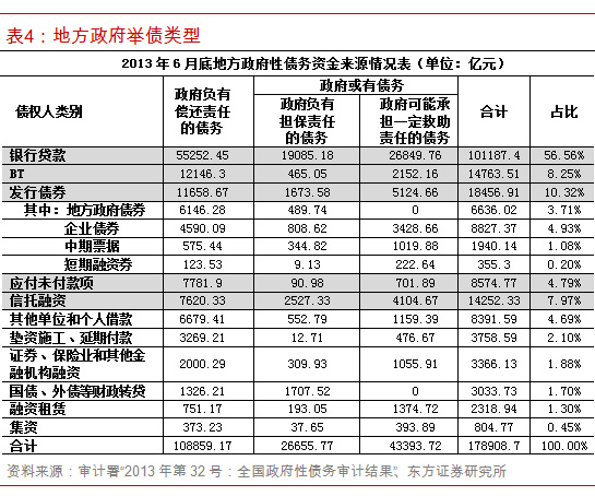 与2010年底的债务结构相比,贷款占比下降,而BT负债、信托融资“爆发”,城投债也明显增长。