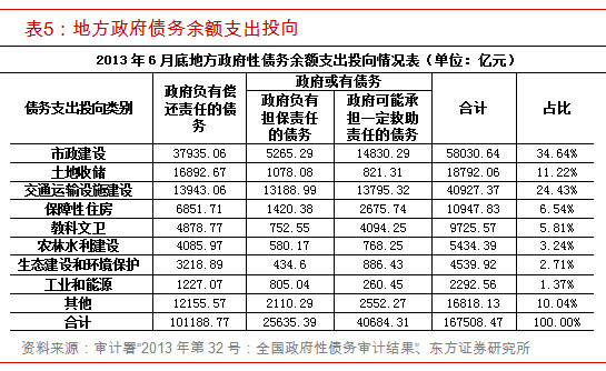 五、债务投向:东部投市政建设,西部投交运设施