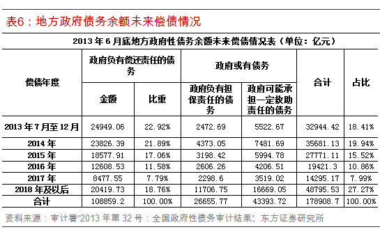 通过比较审计署关于地方政府未来几年债务偿还规模与我们的预测值,发现:2014年地方政府债务偿还规模为3.56万亿,略高于我们预测的3.2万亿,根据测算2014-2016年,地方政府借新还旧规模在2万亿左右,有一定压力。