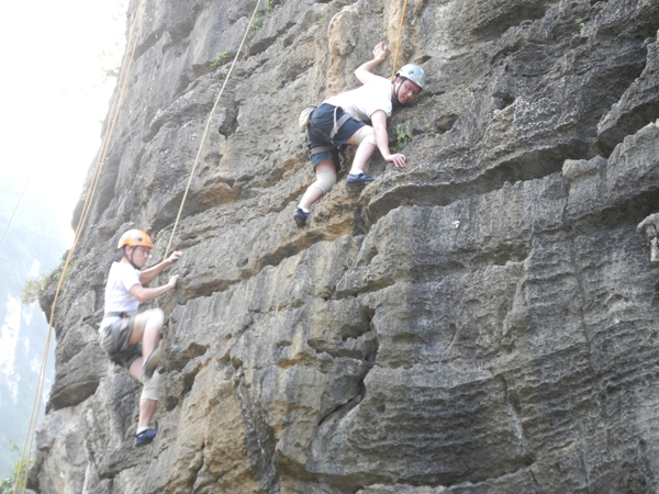 阳朔的山,是如此让人心生向往,激发无穷的征服欲望。为了激励各位同事在日后的工作中越战越勇,在广州信联总助刘希良的带领下,男同胞踊跃报名,接受攀岩挑战。陡直的岩壁上每一滴汗水,都代表着他们每一个坚实的脚步,再大的困难,也无法阻碍他们向着目标前进,越攀越高,越望越远。