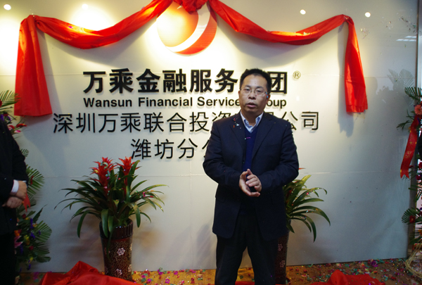 万乘金融服务集团CEO、总裁韩晓专程赴潍坊为新公司揭牌。