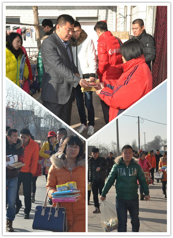 (员工们自发捐助学习用品、食物、衣服等)