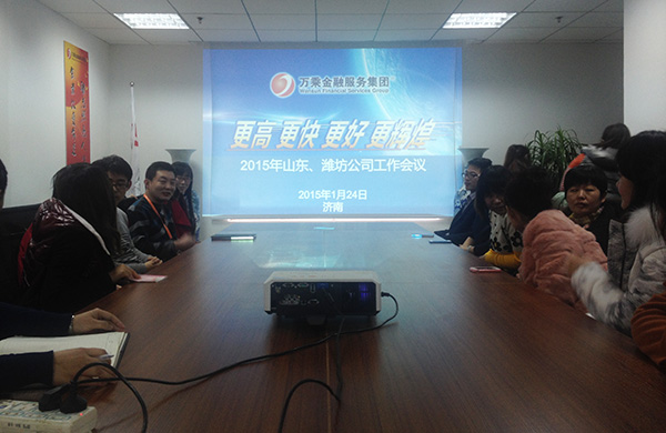 2015年1月24日,山东、潍坊万乘全体员工齐聚济南,贯彻学习集团2015年经营工作会议精神。会议由山东万乘副总经理周媛主持。