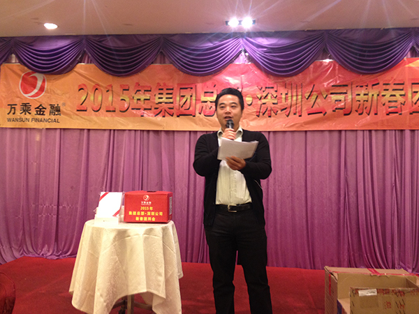 深圳公司总经理杨帅、集团稽核部总经理马长海先后在团拜会上讲话,祝在座的各位以及遍布全国万乘的兄弟姐妹们新年快乐,万事如意,再创辉煌!