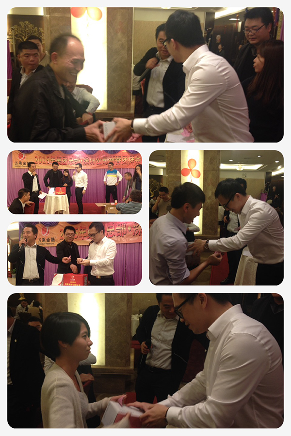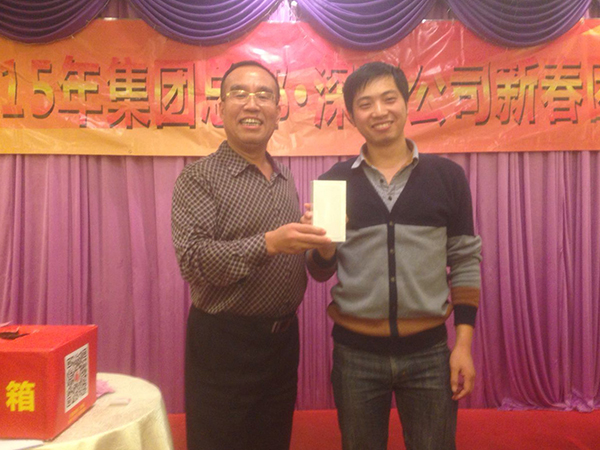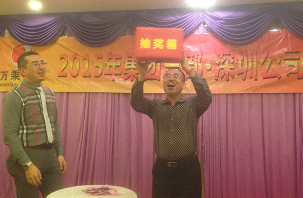 觥筹交错中,团拜会抽奖活动正式开始。与会人员在入场签到时将领取的活动抽奖券副券放入抽奖箱中,由集团CEO、总裁韩晓、深圳公司总经理杨帅和深圳公司优秀员工代表现场抽出鼓励奖30名、三等奖16名、二等奖10名、一等奖3名、特等奖1名。尤值得一提的是,本届团拜会的特等奖是iPhone6一部,一等奖是iPad mini2三台。现场掌声、欢呼声与惋惜声此起彼伏,在大家的热切期盼中,奖项最终花落各家。抽奖活动将节日的喜庆氛围推向了高潮,新春团拜会圆满结束!