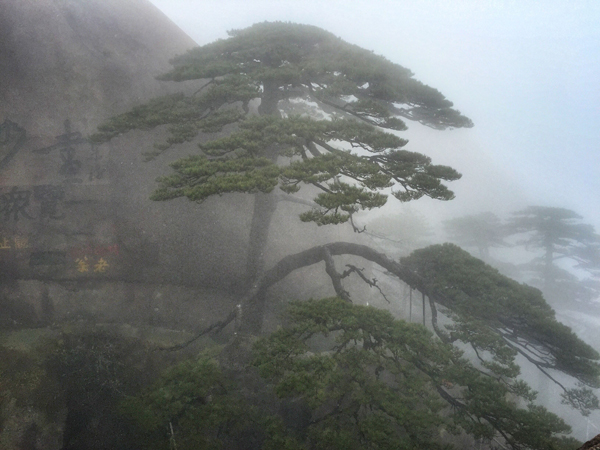 从峰顶下来,一路上还有许多黄山名松汇聚于此,如:接引松、龙爪松、卧龙松、探海松、黑虎松等等。黄山的松树姿态坚韧傲然,美丽奇特。因为生长环境的特殊性,许多松树都只在一边长出树枝。这些松树犹如一支支神奇的画笔,给黄山凃上了生命的色彩。