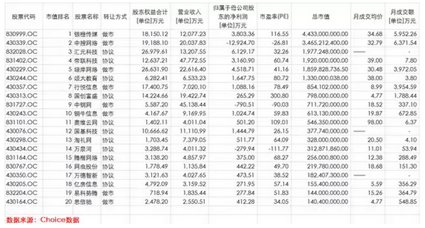 按照市值排名,新三板的“和相关服务”这个类别下,市值前20/53名的情况。我想说的是:你们都谁啊……