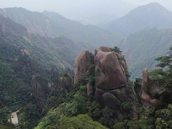 到田园牧歌后,游九马池、福寿宫、三清山原始部落村、神秘山寨、古戏楼、深山人家、猎人小屋、江南古董、生态园林等。田园牧歌带我们进入佤寨的世外桃园(观佤族表演),和佤寨姑娘小伙面对面、手牵手一起狂欢。不自不觉就到了晚上,我们入住了山下酒店。第二天清晨我们就开始了三清山之行。登山的过程很累,这不仅锻炼了我们的身体,更加强了我们自身锲而不舍的毅力。汗水和雾水打湿了头发、衣服,大家也浑不在乎。我们的李总登山的劲头十足,带领着大家一起前进。当然登山的过程也不忘欣赏沿途的风景,我们把每个美丽、精彩的瞬间都收进了镜头里,留作纪念。“天下第一仙峰,世上无双福地”,直至身临其境才能深刻的体会其中的韵味。此时的我也被三清山的美景折服。苍翠的松树姿态婀娜,峭立的石壁岿然而立。从山上往下看,白茫茫的雾徐徐升起,一座座山峰像娇羞的姑娘般遮起了面纱,让人不能看的真切。那浩瀚的云海,白的一尘不染,仿佛真的有仙气,更让你觉得置身于仙境,飘飘欲仙。神龙戏松、一线天、仙苑秀峰、三龙出海、观音送子、猴王献宝。每一处都或惊、或奇、或险、或叹。美不胜收,让你流连忘返。