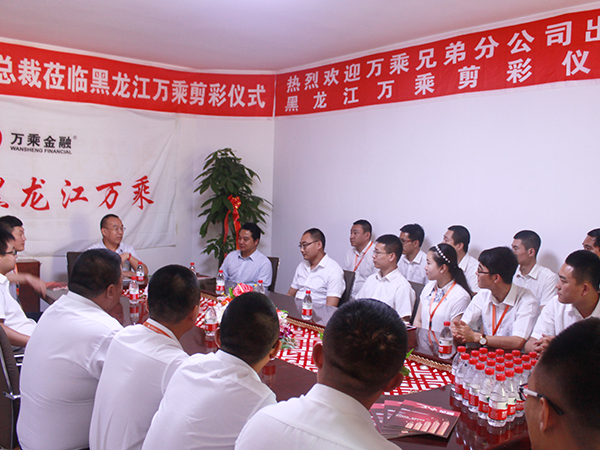 万乘金融服务集团CEO、总裁韩晓专程赴哈尔滨为黑龙江公司乔迁揭牌并发表了热情洋溢的讲话。沈阳万乘总经理刘润东、辽宁万乘总经理王新峰、吉林万乘副总经理刘晓鹏、大连万乘副总经理高震到场祝贺并代表兄弟公司致辞。