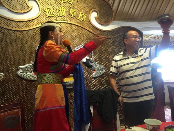 感受了沙坡头独具特色的黄河文化,下午,大家一同来到了最具个性的通湖草原。通湖草原位于内蒙古和宁夏交界处的腾格里沙漠腹地,东距阿左旗巴彦浩特200公里,南离宁夏中卫市26公里,西望甘肃河西走廊,与“AAAAA”级旅游胜地沙坡头——沙沙相连。这里是古丝绸之北路要塞。古商道、古盐道、大盛魁古驼道。沙漠湖泊、沙漠绿洲、沙漠草原、沙山岩画,还有古长城、古战场、古买卖城遗址;流传千古的故事和传说,以及好客的草原牧民。因此,被誉为沙漠中的“伊甸园”。在沙漠中,乘坐沙漠越野车飞驰而过的那一刻,大家激动的高呼呐喊,驱赶往日的疲惫,重新变得精神抖擞。