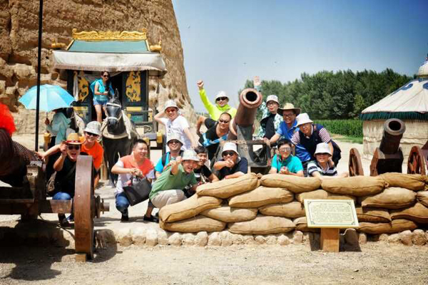 体验了宁夏回族文化的独特魅力,下午,大家又纷纷来到了此次两日游的最后一站——镇北堡影视城。在中国众多的影视城中以古朴、原始、粗犷、荒凉、民间化为特色,是中国三大影视城之一,也是中国西部唯一著名影视城。在此摄制影片之多,升起明星之多,获得国际、国内影视大奖之多,皆为中国各地影视城之冠,故被誉为“中国一绝”。华夏西部影视城已逐步将单纯参观型的旅游点发展成既有观光价值,又有为游客制作影视片及餐饮、购物、陶艺、骑射等多样化服务的娱乐型旅游区。