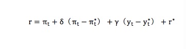 约翰·泰勒(John B. Taylor)本人对美国货币政策规则的研究集中在20世纪70-90年代,他提出应考虑产出缺口和通胀缺口,以最优化中央银行的货币政策反应函数。泰勒在《实践中的相机抉择与政策规则 》中认为:第一,政策规则优于相机抉择,因其易于建立当局与市场之间的合作关系。第二,政策规则要有较好的“反馈机制”。第三,在固定汇率制下,一国不能自主决定本国的利率水平。第四,美国的平均自然利率(实际利率)约为2.0%,考虑到价格测量过程中存在的误差,每年2%的内含通胀率目标能够接近代表价格稳定或近似代表“零通胀”,即使用如下方程对联邦基金利率进行调整,这就是经典的“泰勒规则”: