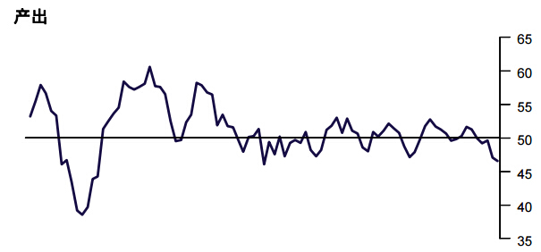 8月份中国通用制造业产出指数初值录得46.6 (7 月为47.1),45 个月来最低: