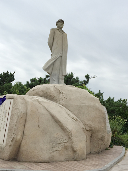 短暂的旅程即将结束,为了给大家留下更多难忘的回忆,9月5日我们抵达了此次旅行的最后一个站点——鸽子窝公园。鸽子窝公园又称鹰角公园,位于海滨的最东端,占地300余亩,以观海上日出闻名。听着导游的解说词,原来我们的开国领袖毛泽东主席也到过此地,看到海上波涛汹涌的壮丽景象还写下了著名的《浪淘沙•北戴河》。当地为了纪念他,还为他建了一座雕像,雕像高3.2米,仿花岗岩基坐高2.7米,基坐东部用大理石刻着毛主席的词《浪淘沙•北戴河》。望着伟大的毛主席雕像,仿佛回到了曾经他指点江山的激情时刻。