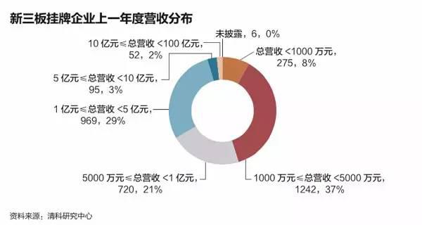 不仅仅是中小微企业,越来越多的各细分领域的龙头企业、大型企业开始登陆新三板,比如齐鲁银行、中科招商等等。据清科数据统计,上一年总营收在10亿元以上的企业有约20家,上一年营收1亿-5亿之间的企业最多,能够占到41%的比例。