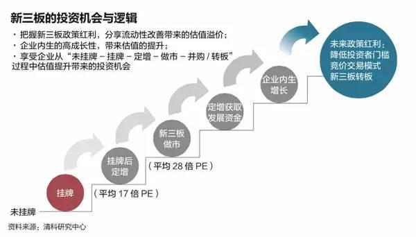 彼时,市场火爆的原因主要是市场参与者对“新三板新政”的预期。普遍认为诸如市场分层、降低投资者门槛、完善转板制度、推出竞价交易等政策有望陆续出台。由于A股和新三板市场之间估值存在价差,在转板预期下,新三板投资财富效应猛增。