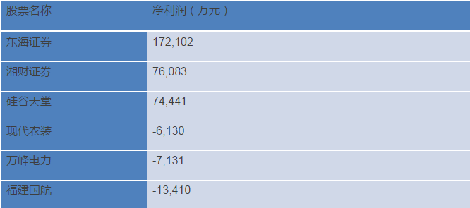 新三板净利润排名前三与后三名比较: