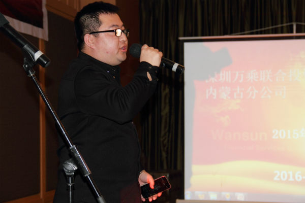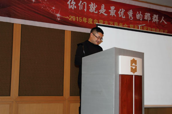 首先,蔡总上台致年会开幕词,向全体工作人员传达了新的一年的祝愿,回顾了内蒙万乘2015年公司的发展情况,总结了过去一年的工作成果。