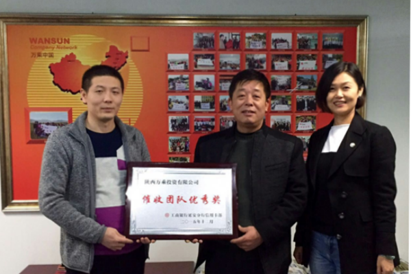 2016年1月15日陕西万乘荣获延安工行颁发的催收团队优秀奖,这是延安工行对我们催收能力的再次肯定,2016年的合作中我们要拿出更好的服务创造最优的成绩。
