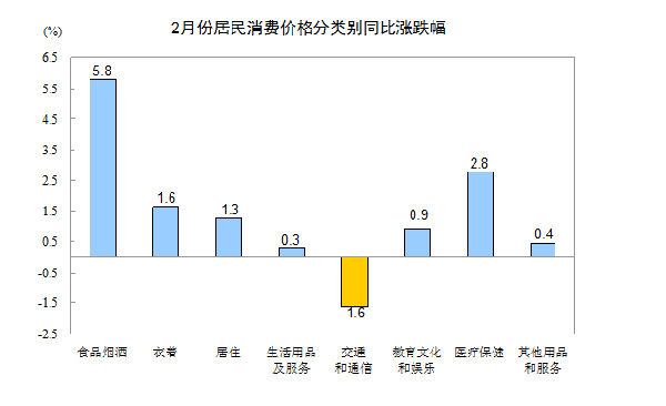 从环比看,2月份CPI涨幅比上月扩大了1.1个百分点,主要是受寒潮天气和春节因素的双重影响。